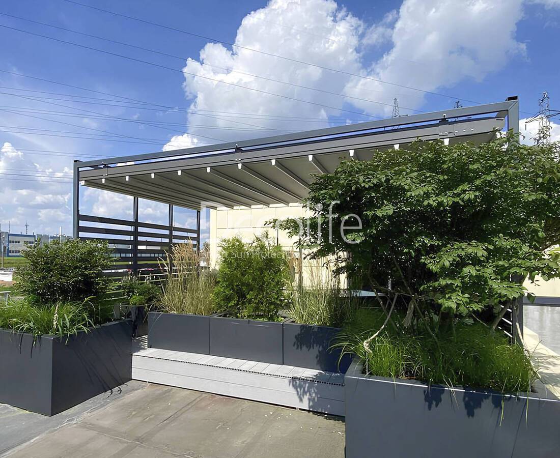 В биоклиматических перголах солнцезащитная функция сочетается со способностью предотвращать нежелательное воздействие в непогоду. Такие системы устанавливаются на террасах в домах и на открытых площадках, принадлежащих коммерческим заведениям. Задача перголы заключается в том, чтобы отдых в таких пространствах всегда был комфортным.