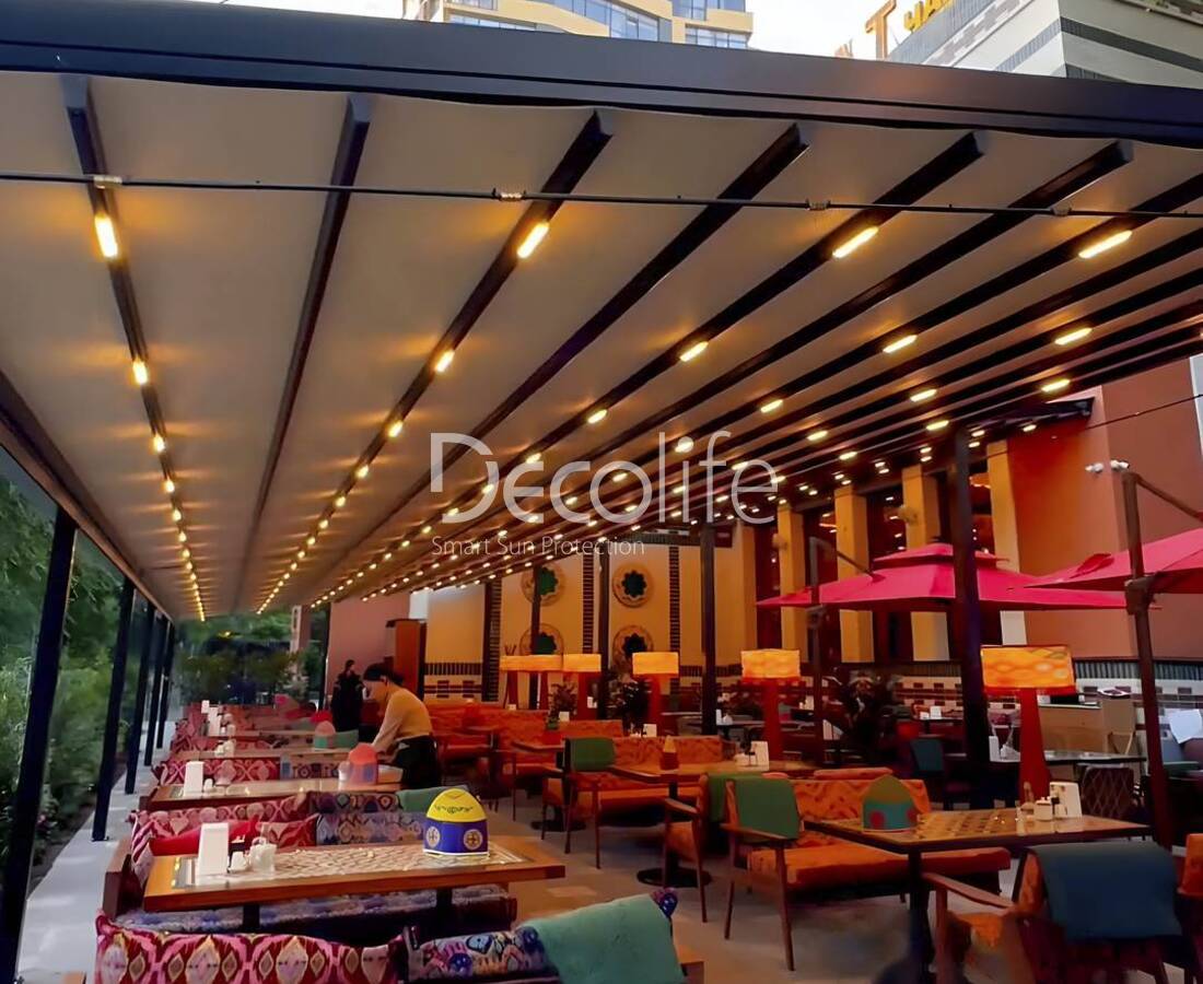 Тентовые перголы Decolife Project Light, объект реализован партнером "TENT VERTEX" - г. Алматы, р-н "Нават"