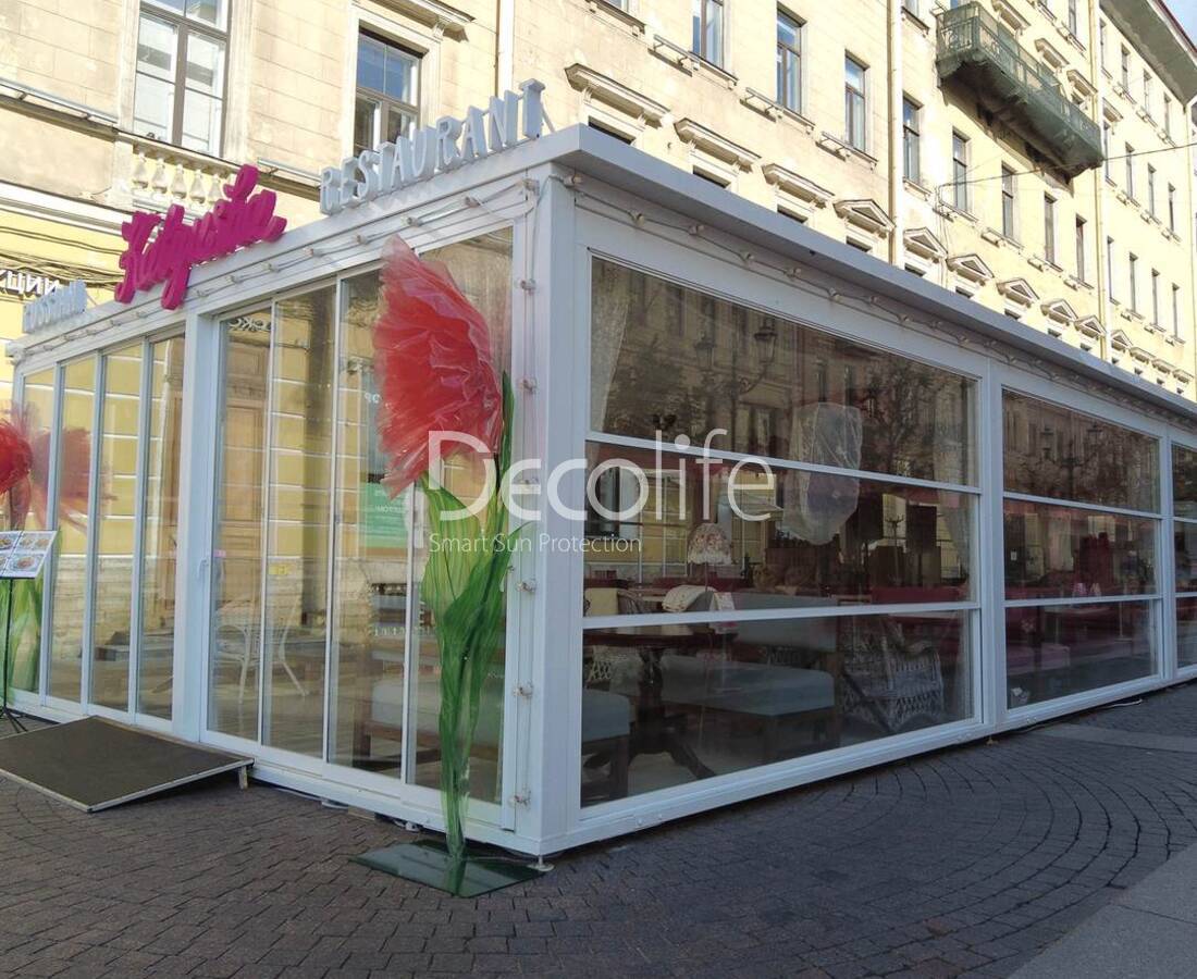 Пергола Decolife Project Light Twin + Безрамное остекление S100 - г. Нижний Новгород, Ресторан "Шатфорд"