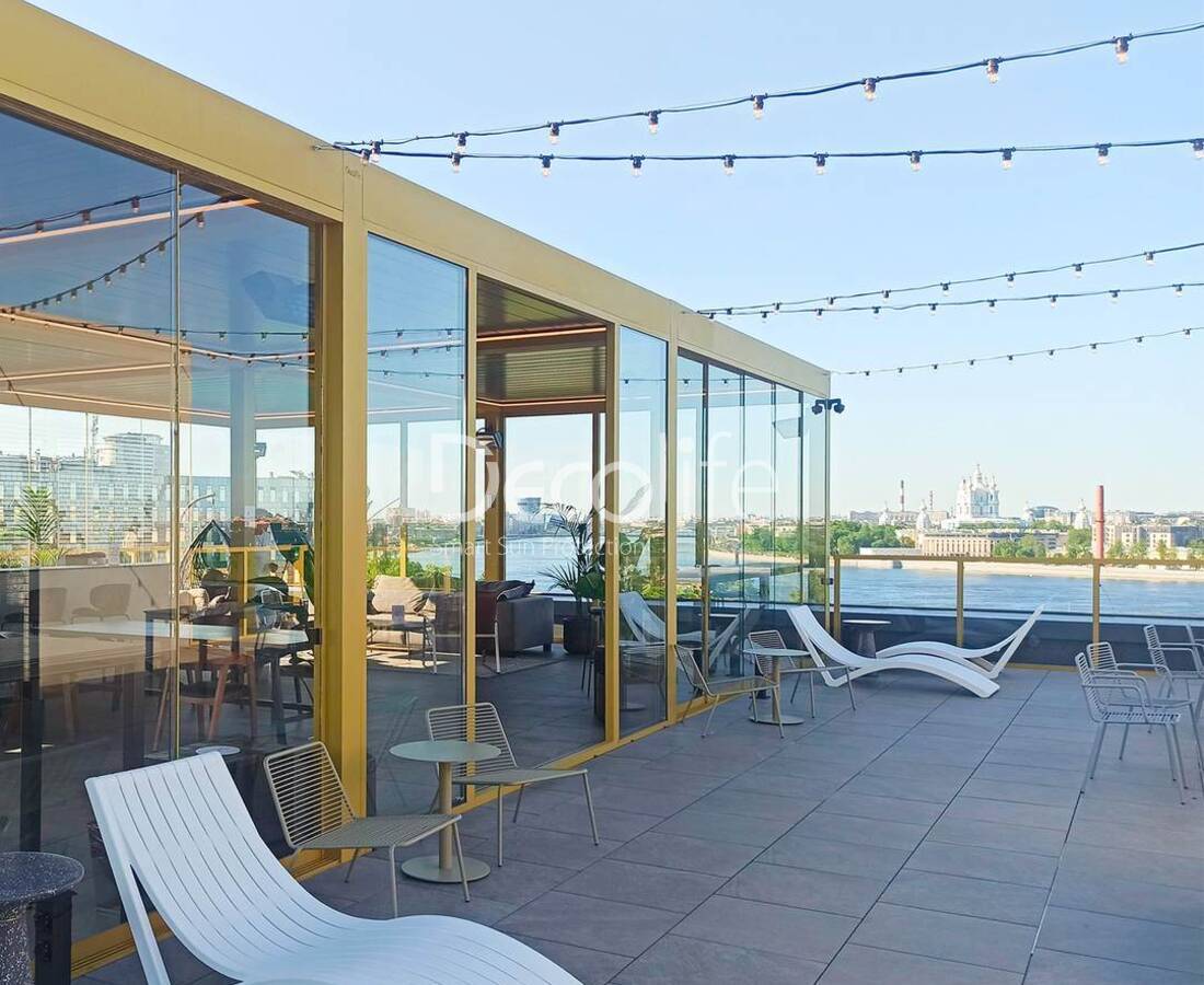 Пергола Decolife B700-25С + остекление FC58, S200 - Лаунж зона "Яндекс", БЦ "Феррум"