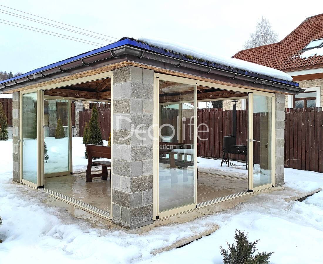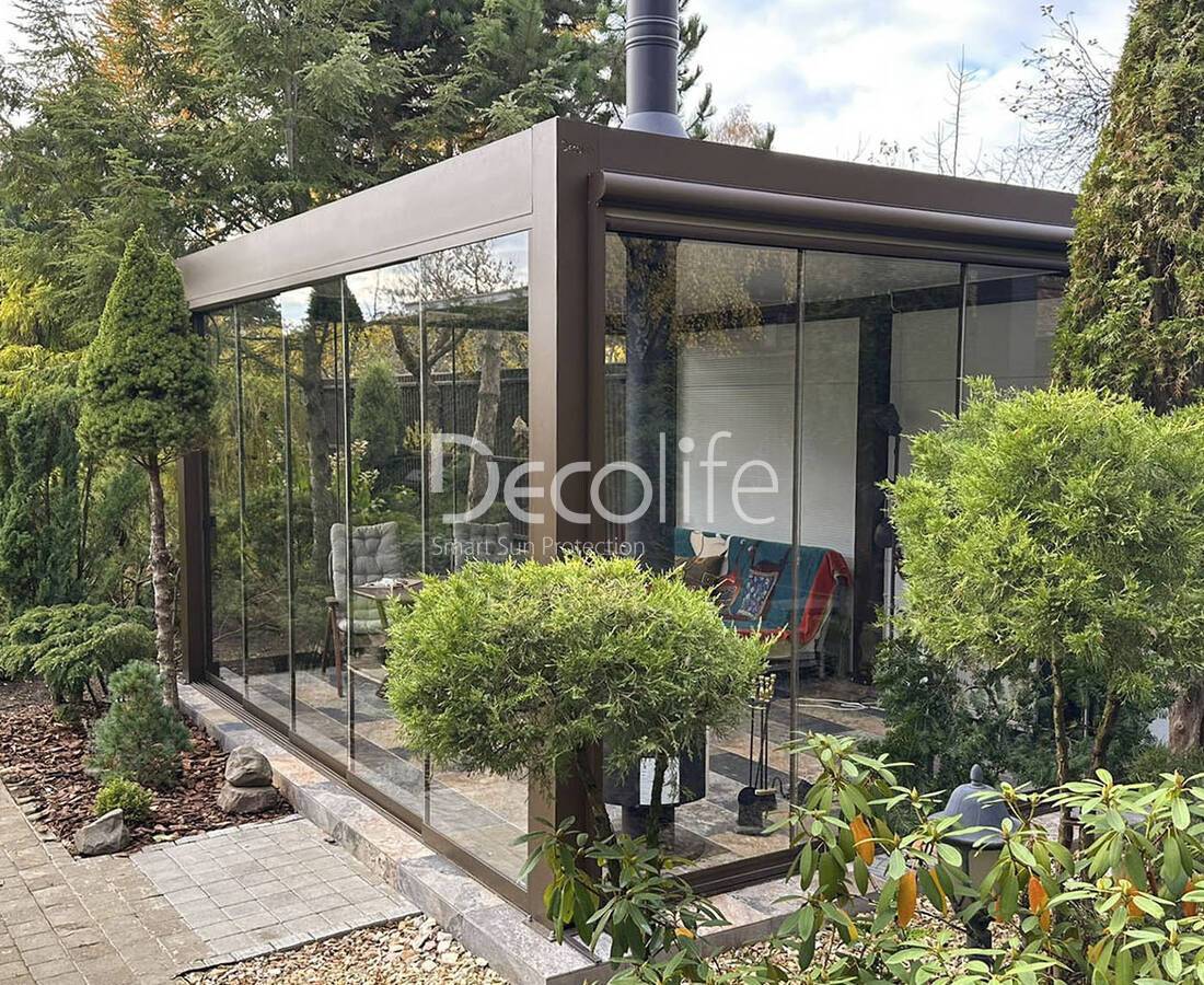 Пергола биоклиматическая Decolife B500-20П + Гильотинное остекление W500 - г. Светлогорск